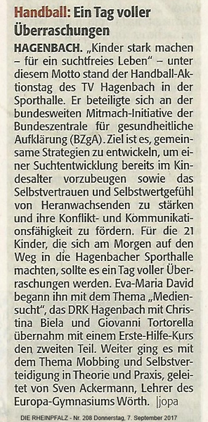 Seit dem jahr 2016 bietet Sven Ackermann an staatlichen Schulen, Volkshochschulen sowie in Vereinen Kurse mit dem Namen "Stopp heißt Stopp - Kinder setzen Grenzen" für Kinder bis 14 Jahre an. Der Kurs setzt sich aus einer Mischung von theoretischen und praktischen Einheiten zusammen und vermittelt Methoden, wie Kinder gefährliche Situationen fürhzeitig erkennen und meiden können (Prävention), wie sie sicher in einer "face to face" Situation auftreten (Selbstbehauptung) und wie sie sich im Falle von physischer Gewaltanwendung besser schützen können (Selbstverteidigung).