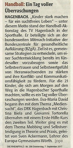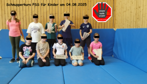 Der Kurs gibt den Kindern einen Rahmen, in welchem sie sich spielerisch, erkenntnis- und handlungsorientiert mit einzelnen Aspekten von verbalen und körperlichen Übergriffen, Sexismus, sexueller Gewalt, Telefonterror, Cypermobbing und Schutzrechten auseinandersetzen können. Durch Gespräche werden verschiedene Gefahrenquellen erläutert und Lösungsmöglichkeiten erarbeitet, praxisnahe Situationen nachgestellt und Szenarien durchgespielt. Auf diese Weise lernen Mädchen und Jungen zielorientiert auf bestimmte Situationen zu reagieren. Auch werden Sie darin bestärkt, verbale und körperliche Grenzverletzungen bewusst wahrzunehmen, sich gegen diese zur Wehr zu setzen und frühzeitig Hilfe zu holen.
